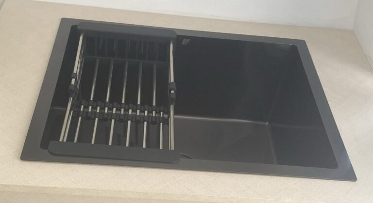 Elegante lavaplatos empotrable negro, con diseño minimalista y acabado mate antihuellas. Incluye una práctica rejilla extraíble para un óptimo secado y organización. Fácil instalación y construcción robusta para una larga duración. Perfecto para cocinas modernas.
