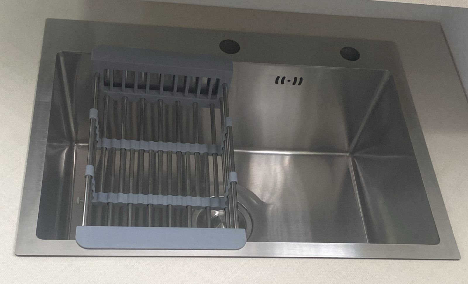 Elegante fregadero de acero inoxidable de diseño moderno y funcional. Incluye un práctico escurridor de acero inoxidable con base de silicona para proteger tu encimera. Optimiza el espacio y la limpieza de tu cocina. ¡Descubre más!.